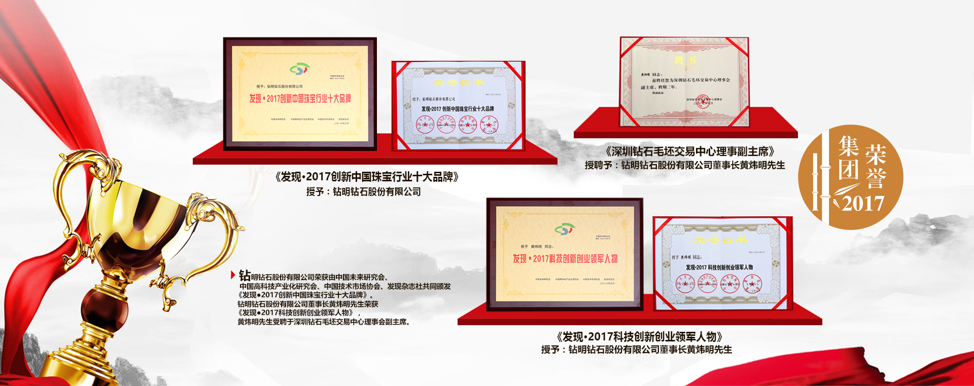【企业喜讯】热烈祝贺钻明荣获《发现·2017创新中国珠宝行业十大品牌》荣誉资质